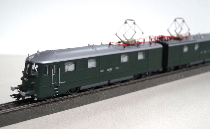 Unter den Marken Märklin und TRIX bringt Märklin ein völlig neu entwickeltes H0-Modell heraus. Mit seinen beiden Motoren kann dieses Modell wahrscheinlich ähnlich lange und schwere H0-Züge bewegen wie das große Vorbild. Beide Lokhälften sind per trennbarer Kurzkupplung verbunden und besitzen jeweils einen fein detaillierten Scherenstromabnehmer, der digital heb- und senkbar ist. Das schön detaillierte und schwere Metall-Modell ist mit umfangreichen Sound- und Lichtfunktionen ausgestattet. So lassen sich beispielsweise das Doppel-A Licht oder die Versionen mit einfacher weißer (Schweizer Schlusslicht) oder einfacher roter (Falschfahrsignal) hinterer Beleuchtung nachstellen. Der Führerstand und der Maschinenraum ist separat beleuchtbar. Trotz ihrer Länge von 39,1 cm ist die Lok in der Lage Modellradien von 360 mm zu durchfahren.
