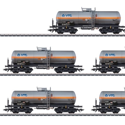 Passend zur BR 151 - aber auch zu vielen anderen modernen Lokomotiven - erscheint ein 5-teiliges Set aus kurzen 4-achsigen Gaskesselwagen als gealtertes mhi-Exklusivmodell.