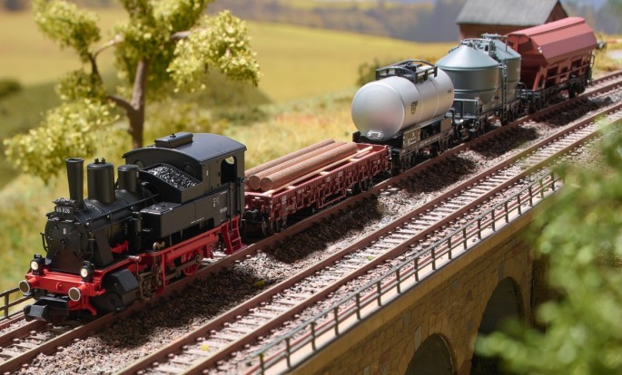 Das vierteilige Set enthält je einen Niederbordwagen Rmrso 31, einen zweiachsigen Kesselwagen, einen Silowagen Kds 56 der VTG und einen Seitenentladewagen Ktmmvs 69. Alle Wagen sind bei der Deutschen Bundesbahn eingestellt. Der Niederbordwagen ist mit Stahlstangen beladen. Der Selbst- oder Seitenentladewagen ist werkseitig mit fein bedruckten Schlussscheiben versehen.