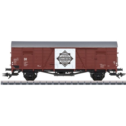 Der VEB Stern Radio war als Dachorganisation ein Zusammenschluss von insgesamt vier Betrieben mit unterschiedlichen Geschichten. Der Betriebsteil in Sonneberg - dem dieser Sonderwagen gewidmet ist - wurde 1945 als Elektro-Apparatefabrik Köppelsdorf (EAK) gegründet. Schon 1946 begann die Serienproduktion von Radiogeräten. Im Jahr 1952 wurde der Betrieb in VEB Stern-Radio-Sonneberg umbenannt. 1982 war der Betrieb größter Hersteller von Radios in der DDR. Die Geräte wurden neben dem Vertrieb innerhalb der DDR (teure "Bückware") vor allem exportiert. Dabei erfolgte der Verkauf nicht nur an die verbrüderten Ostblockstaaten sondern gegen die begehrten Devisen auch via Großhändler in die BRD. Nach der Wende wurde das Werk in Sonneberg liquidiert und abgewickelt. Der Standort wurde wenig später zur Wagenproduktion von Märklin und viele ehemalige "Sternler" fanden dort eine neue Beschäftigung.